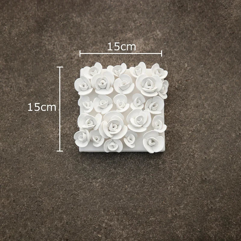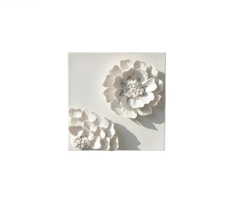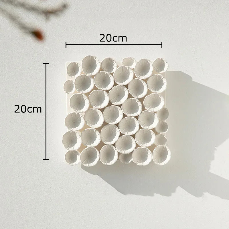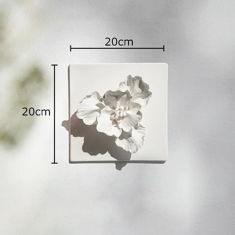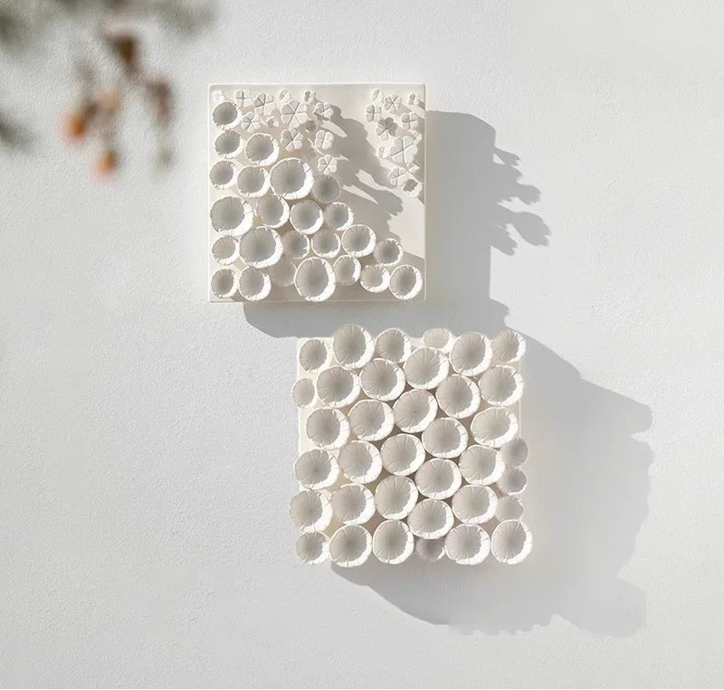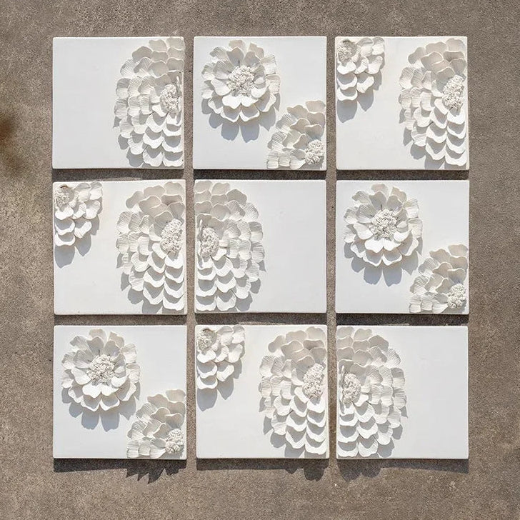 Composizione decorativa da parete in ceramica a forma di fiore bianco: un elemento elegante e materico che dona raffinatezza e tridimensionalità agli ambienti contemporanei.