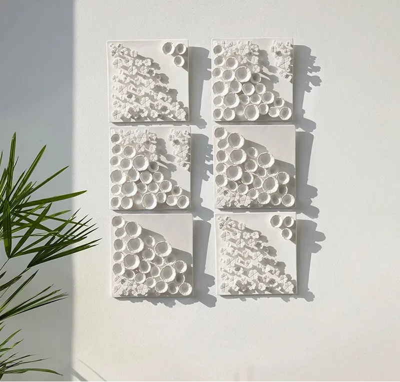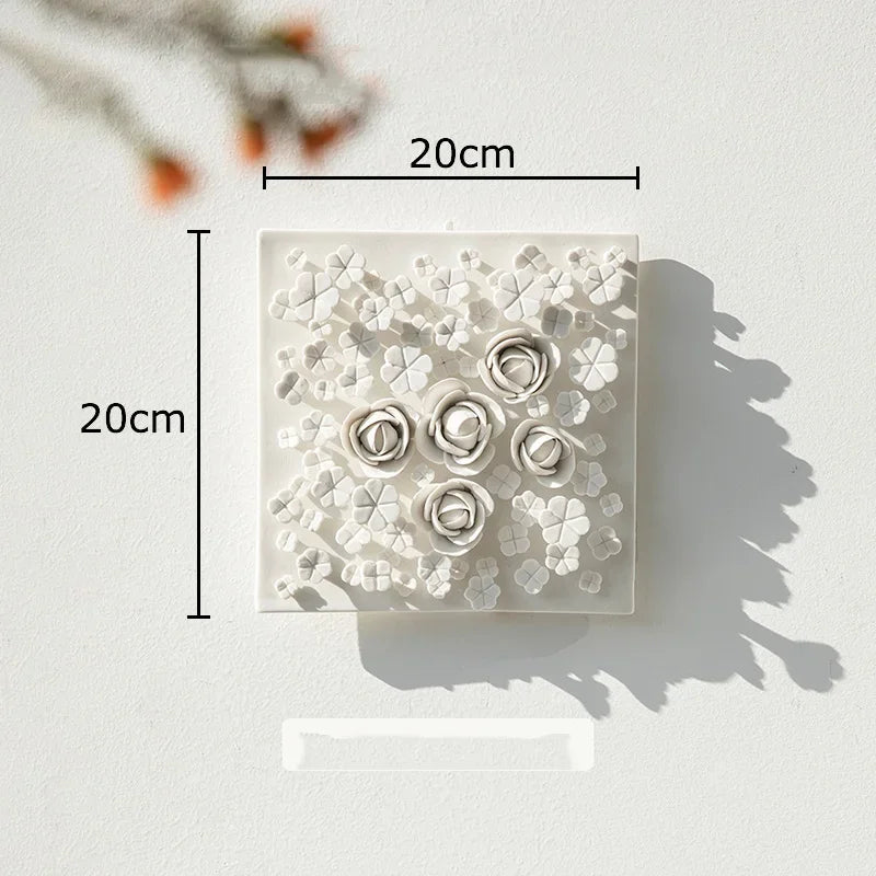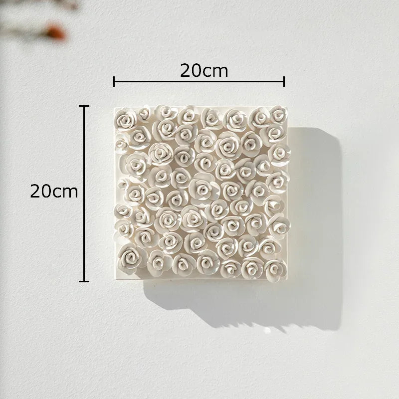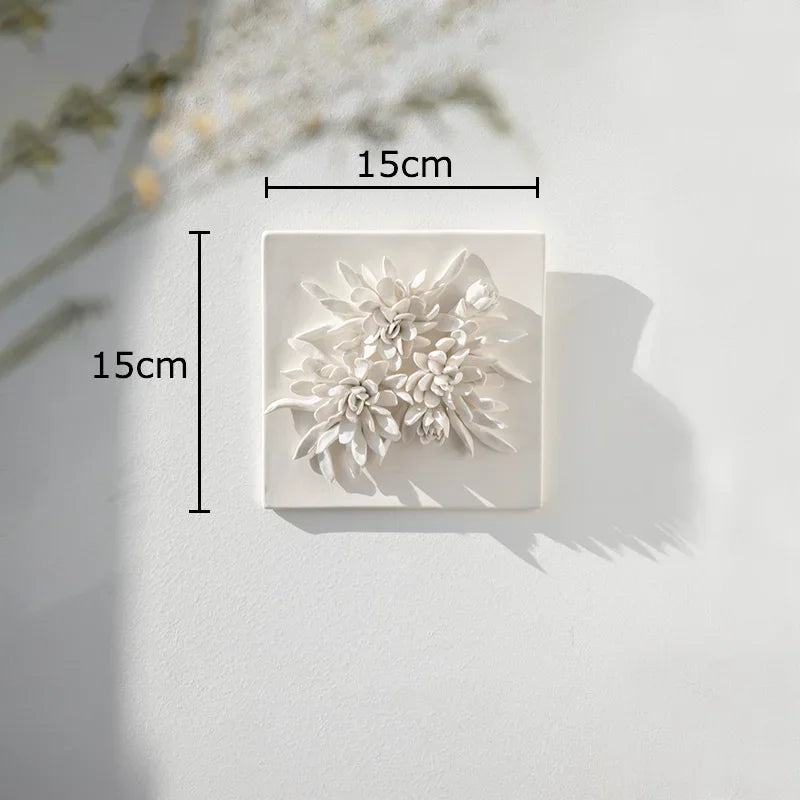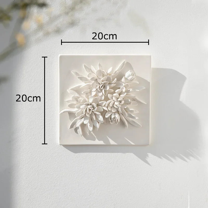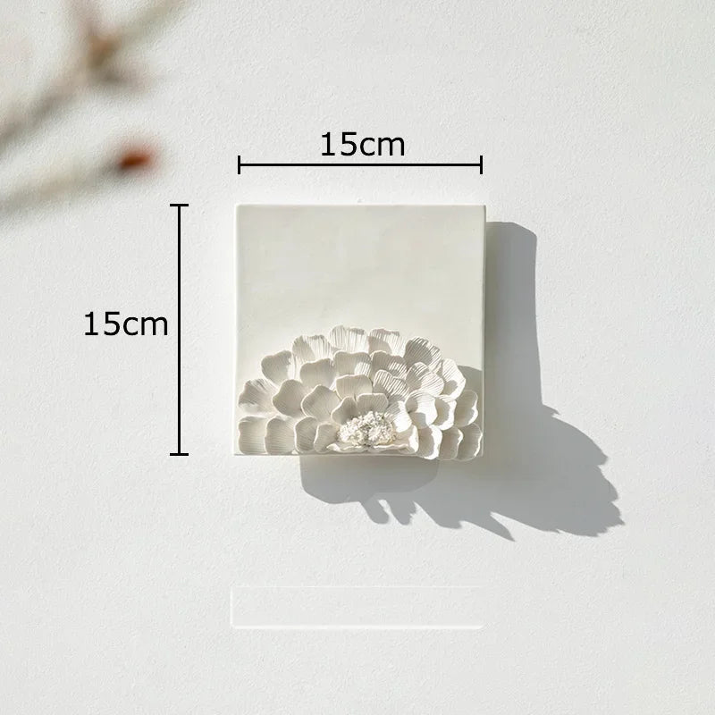 Composizione decorativa da parete in ceramica a forma di fiore bianco: un elemento elegante e materico che dona raffinatezza e tridimensionalità agli ambienti contemporanei.