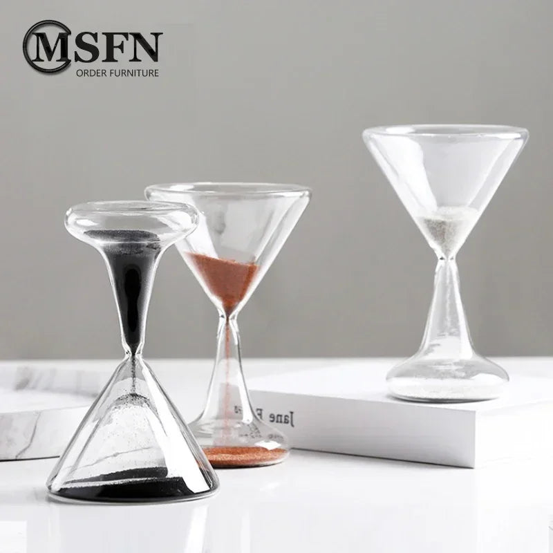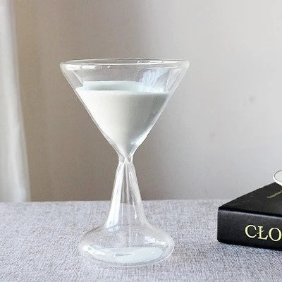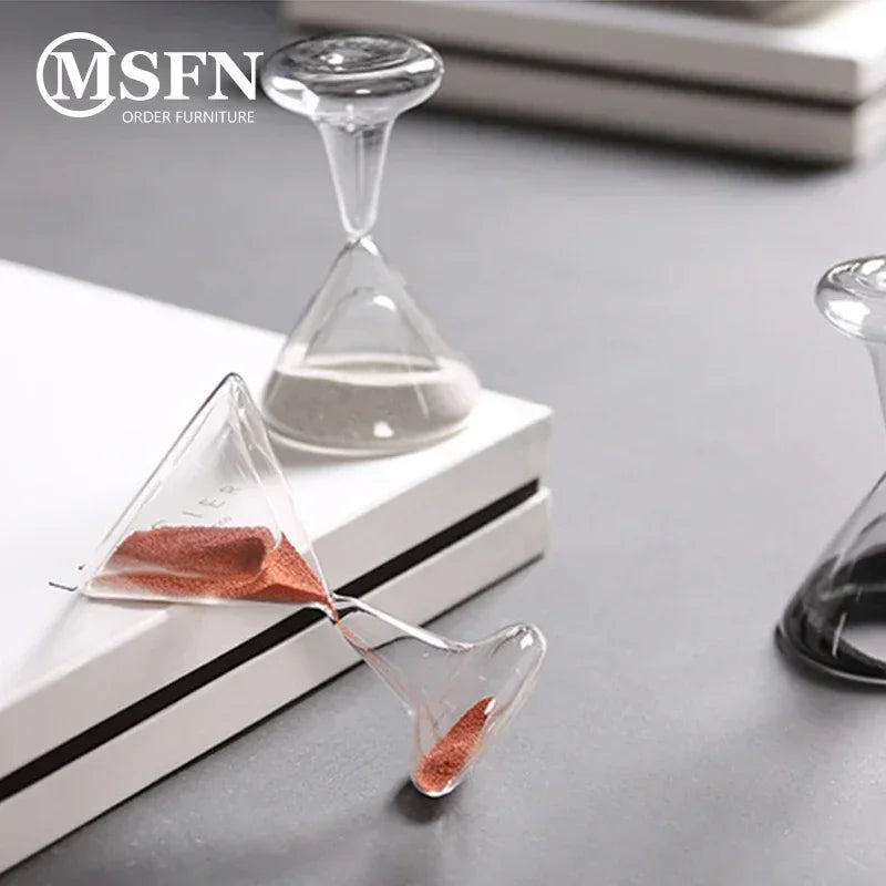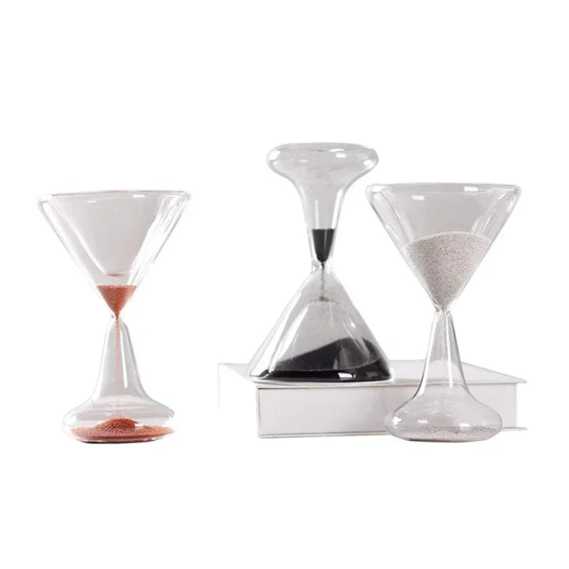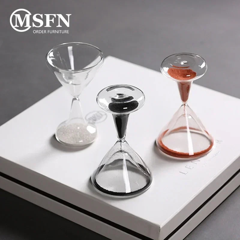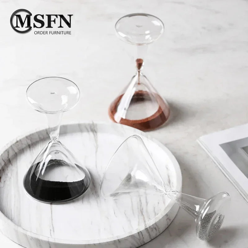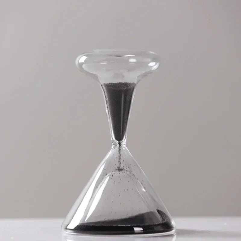 Un oggetto simbolico e minimale: una clessidra in vetro trasparente che trasforma il tempo in un gesto visivo silenzioso e contemplativo.