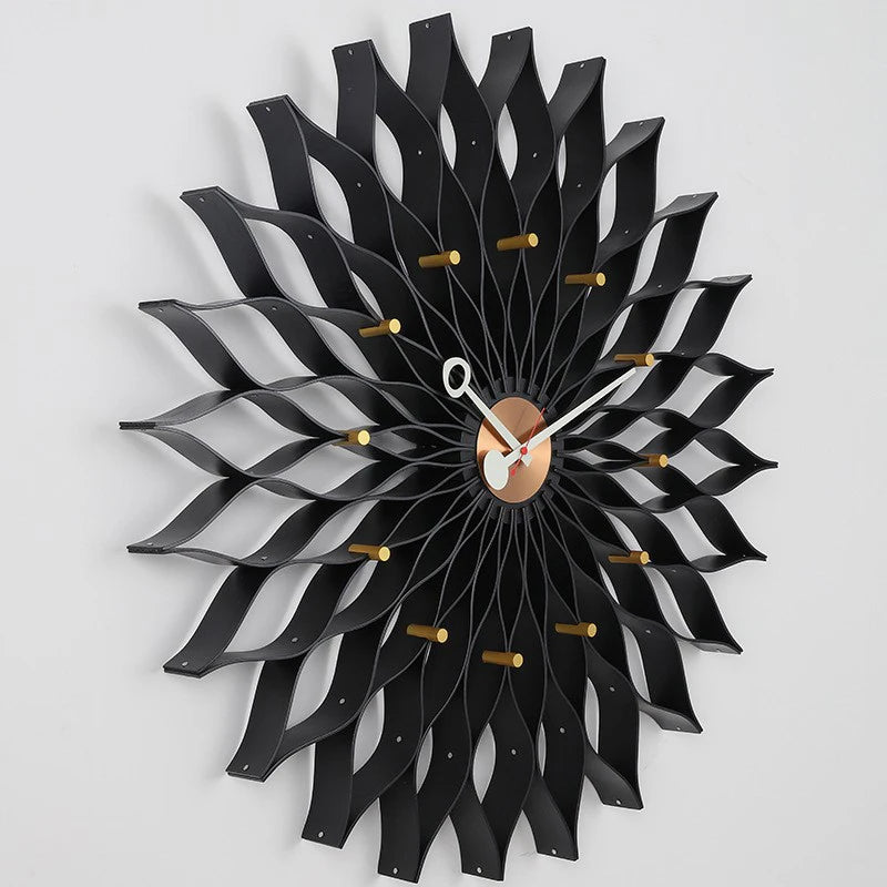 Un orologio da parete scultoreo ispirato alla forma di un fiore stilizzato: un elemento decorativo che unisce funzione e impatto visivo, trasformando il tempo in un dettaglio d’arredo elegante e architettonico.