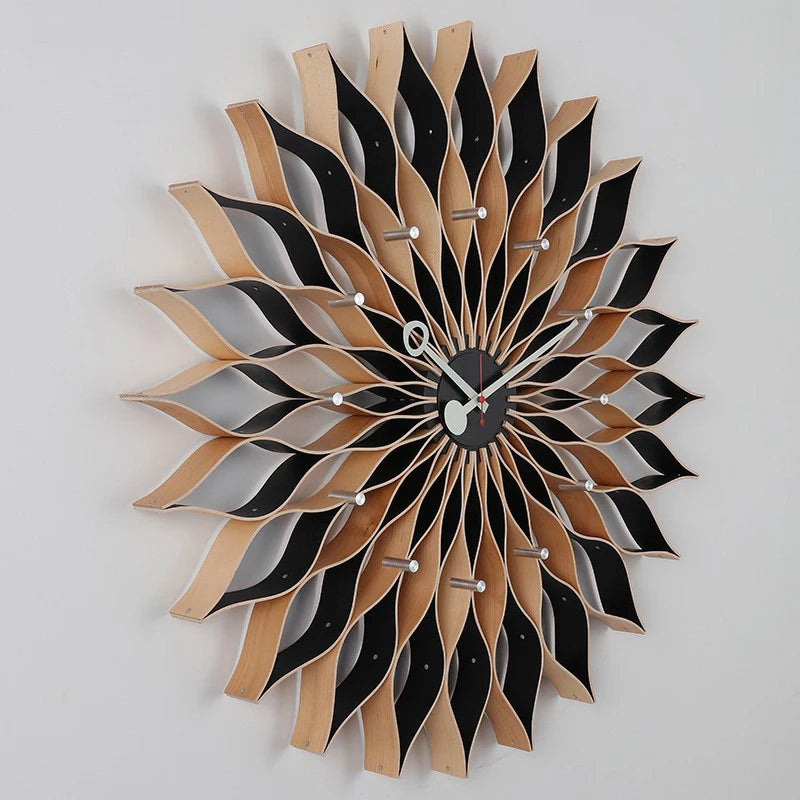 La composizione radiale crea un forte effetto scenografico mantenendo un ’estetica equilibrata e sofisticata. Le linee geometriche e la struttura multilivello rendono l’orologio un punto focale elegante, capace di valorizzare ambienti contemporanei e nordici.